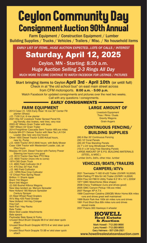 Farm Equipment • Construction Equipment • Lumber • Building Supplies • Trucks • Vehicles • Trailers • Misc • NO HOUSEHOLD ITEMS